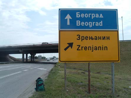 Hitchhiking in Hungary. I have seen better signs in Hungary with more indecipherable town names, but this is the best I could come up with on this trip.