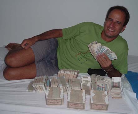 I mailed all of this home from Malaysia, all the time fretting that customs would open it and it would never arrive. I sent two identical boxes at the same time, one full of this money and another with more junky junk, and luckily customs only opened the junky box. Yes! I am now reunited with this smelly money. All of the money in the photo is worth about US$20.