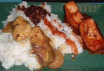 ...your rice dish is given spoonfuls from many different curries for a powerfully delicous taste--not a low calorie dish, I suspect. |