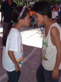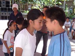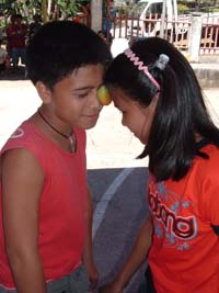 Cucoy and Dudong took me to a village that was having a fiesta. There were so-called parlor games and an orchestra. My favorite game was the one below where kids try to keep an unripe tomato between their faces while dancing. The last couple to keep the tomato aloft wins. Click on the videos to see how funny it is. Itīs a shame that I doubt this kind of game would be permissable in phobic America.