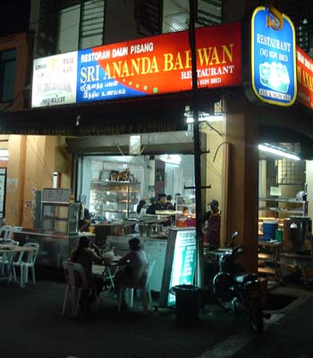 Presenting Sri Ananda Bahwan in Little India, Georgetown, Penang Island, Malaysia. Nominally a southern Indian banana leaf restaurant, where a banana leaf is used as a plate and your right hand is your utensil--never the left hand, (this gives some logic to the sign that says, "WASH HAND") they also do tandoori and work magic with all kinds of meats. I hasten to add that they aren't stretching themselves too thin, unlike in America where you see "Chinese Food-Pizza-Donuts-Sushi" and somehow it all tastes the same.