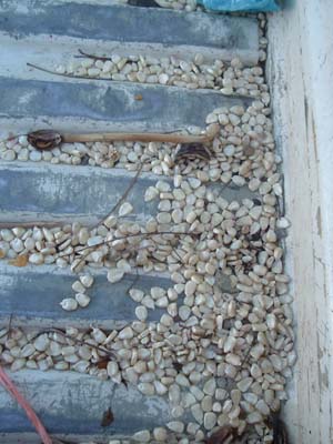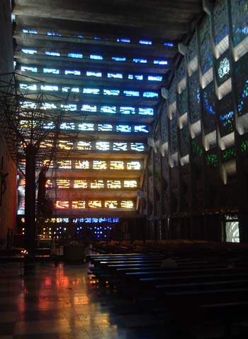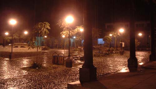 I thought about this as I looked down the road. It had high hedges on both sides with large gloomy trees that formed a darkened tunnel. A young woman lugging a big bag came to stand with me. A pickup came and she waved it down and motioned for me to hop on with her, helping her carry her crazy-heavy bag. I thought it was going all the way to Suchitoto, but it only went a few kms. I was abandoned in an eerily quiet stretch of road, far from anything. Almost no traffic and none going my way, the other cars looking at me curiously. After a long, anxious time, a bus finally came and I gladly hopped on.