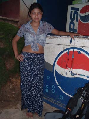We stayed in Guatemala only a few hours as we hitchhiked straight through to Honduras. We sunburnt ourselves good trying to hitch away from the port and then almost immediately got caught in a fierce rainstorm. The photos of this girl below I explain in the news section, October 12, 2006.