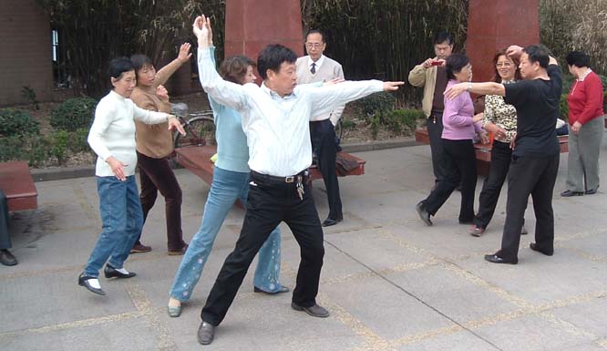 Laziness is the worst trait you can have and industriousness is sexy. At 9am in a park in Shanghai I saw 50 or so people ballroom dancing like this. This light-footed guy in the foreground was revelling in being in demand by all the women.