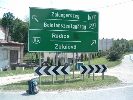 Hitchhiking in Hungary. I have seen better signs in Hungary with more indecipherable town names, but this is the best I could come up with on this trip.