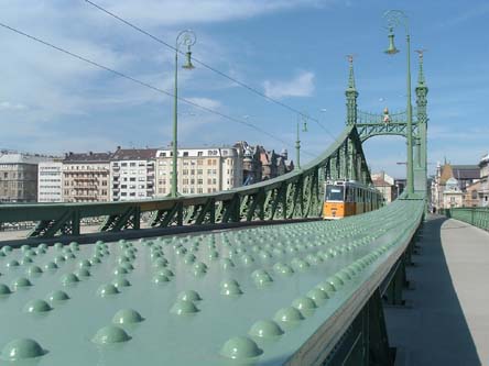 Freedom Bridge spanning the Danube. Budapest has nine or ten bridges crossing the Danube. Further down the river in Belgrade, Serbia, a similar-sized town, there are only three. Paris, not much bigger, has 37 bridges across the Seine!