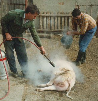 The pig is then scorched and scalded, removing those unwanted hairs. The tough parts were shaved away with a knife.