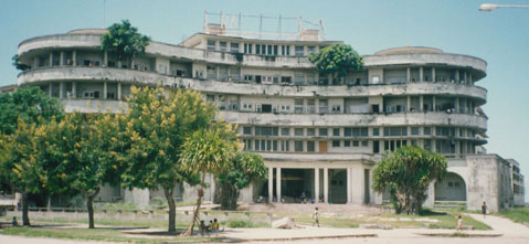 ![]() I met a South African guy who offered to show me around. He used to come to Beira in the early 1970s before the war. We stopped in front of this dilapidated building with the trees growing out of the balcony where he said this used to be the best hotel in town. He spent his honeymoon here. |