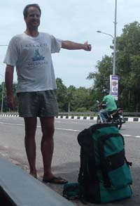 The most memorable aspects of the trip revolved around hitchhiking. In Malaysia, on the same long day, I had a ride with three gay guys (one ended up vomiting), a religious zealot, and one driver, not 10 minutes after he picked me up, was in handcuffs and in the back of a police truck! We had stopped at a police checkpoint and I guess he was someone they were looking for. A plainclothes policeman in a funny loud batik shirt told me, "Your driver was arrested for an offence." I didn't stick around to get any details. I walked away as fast as I could after they let me go.