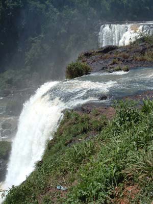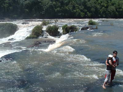 Monday Falls south of Ciudad del Este. If Iguazu Falls didn't exist, people would travel to see these. As it was, just retarded locals who think it is funny to get a photo like this were there. One slip and they could easily be toast.