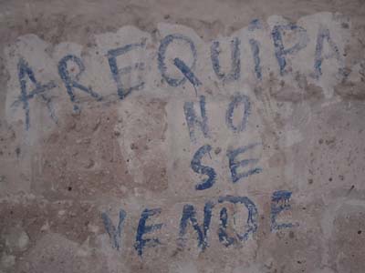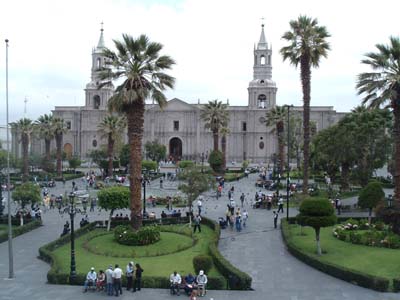 Last time I was in Arequipa in southern Peru it was about 10 days after an earthquake that killed 50 people and toppled the left church spire in the photo. It was predictably a sad place, so I was surprised to see such a bustling, attractive town this time around.