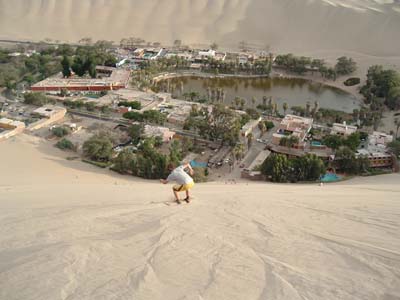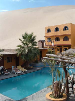 The next bunch of sandy photos are from Huacachina, an oasis about 4 hours south of Lima. I disliked it the moment I saw it, but I repelled the urge to turn around and after I went walking around, I am glad I stayed. The place on the right was my hostel. Like Huacachina, it looks better from a distance.
