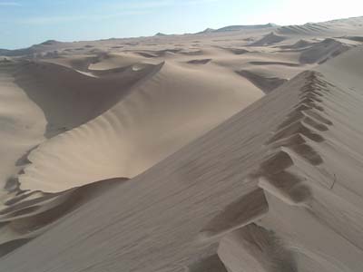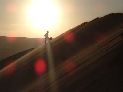 It's harder than it appears to climb these sandy hills. You take two steps up and one step drifting back down, but you are rewarded with great views. You can sandboard down.