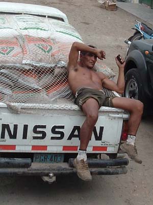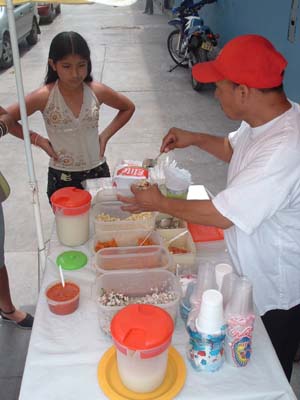 Homemade ceviche sold on the street. I saw this a lot along the coast, but I was always apprehensive to try raw fish that has been in the sun. I went for it anyway and was no worse for the wear. The price was right, too, only one sol, which was about 30 cents. What's a little food poisoning for 30 cents? I like that Peruvian currency is called "sol" or sun. "Hey, how many suns does that cost?" But it is only second best to Botswana where the currency is the pula and 100 thebe = 1 pula, or 100 raindrops equals 1 rain.