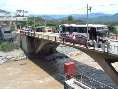 Piura by sunset on the left and the Peru/Ecuador border on the right. At every border I had a fake e-ticket to show that I was leaving the country. Sometimes it is asked for by immigration people primarily looking for a way to get some baksheesh.